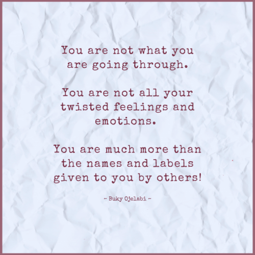 You are not what you are going through. You are not all your twisted feelings and emotions. You are much more than the names and labels given to you by others!