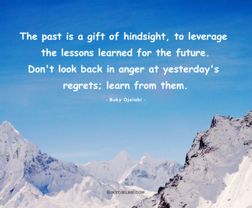 The past is a gift of hindsight, to leverage the lessons learned for the future. Don’t look back in anger at yesterday’s regrets; learn from them.